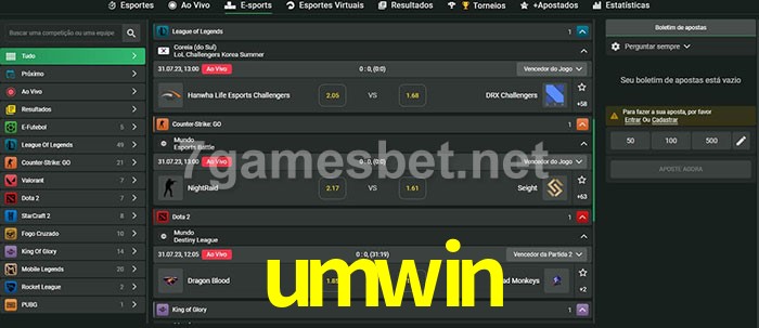 O umwin oferece uma grande seleção de opções de apostas em e-sports com probabilidades competitivas